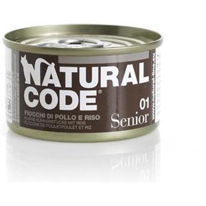 Natural Code 01 Cibo Umido per Gatti Anziani - Fiocchi di Pollo e Riso - Lattina da 85 gr in Alimenti Cani e Gatti