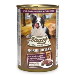 Stuzzy Cibo Umido Monoproteico per Cani Adulti al Cinghiale - 6 Lattine da 400g, Senza Glutine