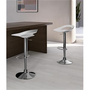 Stones Glen - Sgabello girevole e regolabile in altezza in polipropilene bianco con struttura in metallo cromato