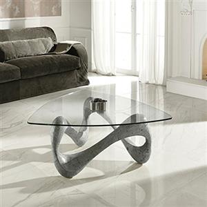 STONES HOME FURNITURE, Tavolino Salotto Moderno con Base in Pietra Fossile Gray Stone e Top in Vetro Triangolare, Modello Tetris, Colore Grigio, 100 x 100 x h 42 cm