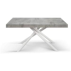 KONTE.DESIGN Tavolo CARRARA Allungabile in Legno Grigio Cemento con Base in Metallo Bianco - 160x90 cm a 240x90 cm