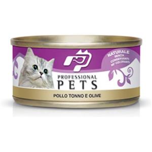 Professional Pets Cibo Umido per Gatti 70g - Pollo 53%, Tonno 20%, Olive 1%, senza Conservanti e Coloranti