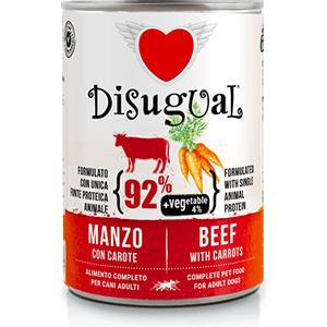 Disugual Alimento Umido Monoproteico per Cani Adulti con Manzo e Carote - Lattina 400 gr