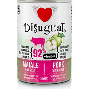 Disugual Dog Fruit - Alimento Umido Monoproteico per Cani Adulti con Maiale e Mela, Lattina da 400 gr