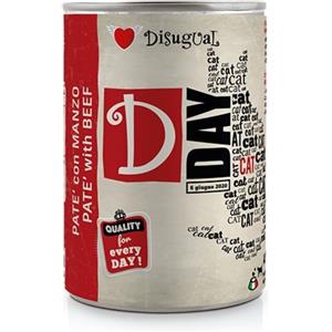 Disugual Gatto D-Day Adulto Manzo - Alimento Umido Completo in Lattina da 400 Gr per Gatti