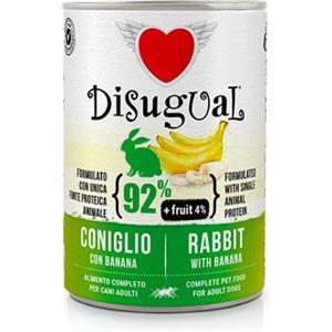 Disugual Dog Fruit Monoproteico Coniglio e Banana 400 gr - Alimento Umido Completo per Cani Adulti, Senza Glutine