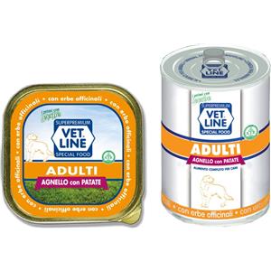 Vet Line Umido Adulti Agnello e Patate 150gr - Alimento Completo Monoproteico per Cani Adulti