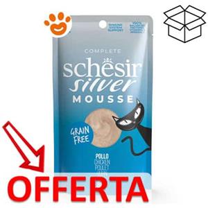 Schesir Silver Mousse Pollo 80 g - Cibo Umido per Gatti Senior (11 anni) Ricco in Proteine e Grain Free