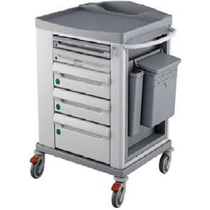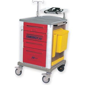 GIMA Carrello Emergenza Small - Acciaio Verniciato, 4 Cassetti, Cestino Laterale e Vassoio Defibrillatore