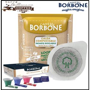 Caffè Borbone Cialde Caffè Borbone Miscela ORO con Kit Accessori, Bicchieri, Zucchero, Palette