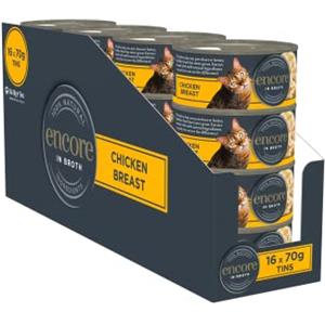 Encore Cibo Umido Naturale per Gatti al Pollo e Formaggio - Confezione da 16 Lattine da 70g, Senza Cereali e Conservanti