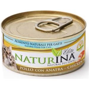 Naturina Elite Cibo Umido Naturale per Gatti - Pollo con Anatra, Cotto al Vapore, Senza Conservanti, 24 Lattine da 70g