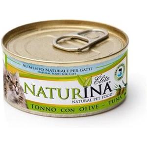 Naturina Elite Cibo Umido per Gatti - Tonno con Olive 70g, Cotto al Vapore e Senza Conservanti