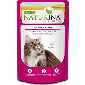 Naturina Elite Cibo Umido per Gatti - Tonno con Gamberetti, 70g, Alimento Naturale e Cotto a Vapore