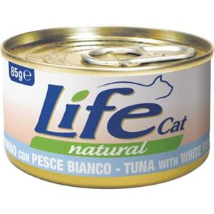 Life Cat Natural Cibo Umido per Gatti - Tonno con Pesce Bianco - Lattina da 85 gr