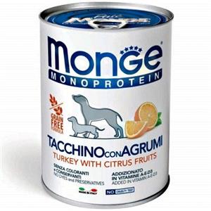 Monge Paté Monoproteico Tacchino e Agrumi - 400g, Cibo Umido Completo per Cani con Ingredienti Naturali e Ricco di Vitamine
