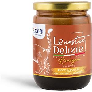 Cliffi Le Nostre Delizie Cibo per Gatti - Filetti di Pollo con Carote e Piselli, 80 gr