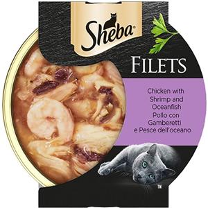 Sheba Filets - Cibo Umido per Gatti con Pollo, Gamberetti e Pesce dell'Oceano - 60g