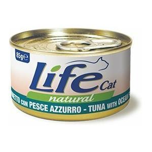 Life Cat Natural Cibo Umido per Gatti - Tonnetto con Pesce Azzurro - Lattina da 85 gr - Ricco di Proteine e Omega 3