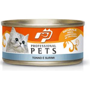 Professional Pets Cibo Umido per Gatti - Tonno 70% e Surimi 5% in Scatoletta da 70g, Naturale e Senza Conservanti