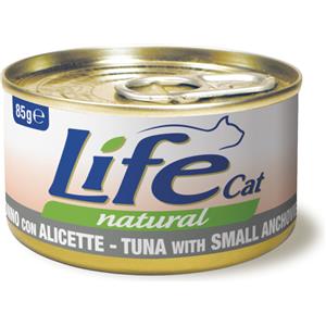 LifeCat Natural Adult - Alimento umido per gatti al Tonno con Alicette, 6 x 85 g