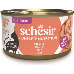 Schesir Alimento Umido Completo per Gatti - Filetti in Brodo di Salmone, Multipack 6 x 85g