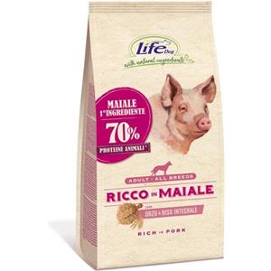 LIFE DOG Secco Ricco in Maiale 12kg - Alimento Completo per Cani Adulti con Carne Disidratata e Cereali Digeribili