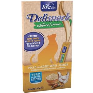 Life Cat Deli Snack Natural Cream Pollo con Cozze Verdi e Quinoa - 6 Bustine da 15 gr