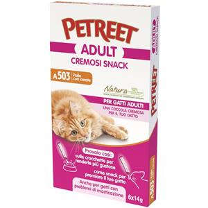 Petreet Snack Cremosi per Gatti al Pollo e Carote - Confezione da 6x14g, 100% Naturali e Senza Conservanti