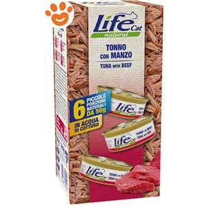 Life Cat Alimento Umido Naturale Tonno e Manzo - Confezione da 6 x 50 gr