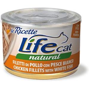 Life Cat Filetti di Pollo con Pesce Bianco e Zucca - 150 gr, 100% Naturale e Cotto al Vapore