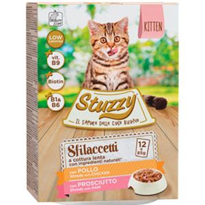Stuzzy Kitten Sfilaccetti Pollo e Prosciutto - Multipack 12x85g con Ingredienti Naturali