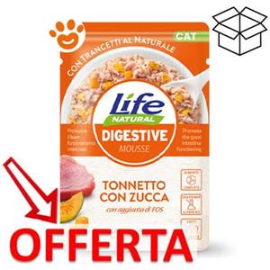 Life Cat Mousse Digestive Tonnetto e Zucca - Cibo Umido per Gatti Adulto - 70 gr