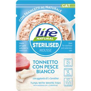 Life Cat Mousse Sterilised Tonnetto e Pesce Bianco - Cibo Umido Completo per Gatti - 70 gr