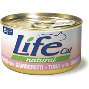 LifeCat Natural Adult - Alimento umido per gatti con Tonno e Gamberetti, 6 x 85 g