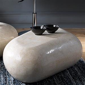 STONES Tavolino Sasso Medium in Pietra Fossile Beige - Design Moderno 98 x 52 cm