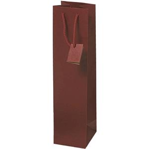 Decoration Borsa Portabottiglie in Carta Kraft Bordeaux - 10x9x39 cm, Con Manico in Cotone e Soffietto Rinforzato - Confezione da 10 Pz