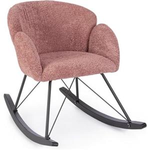 KONTE.DESIGN Poltrona a dondolo SIBILLA in tessuto bouclé ruggine con base in legno rubberwood - Misure 86x62x72 cm