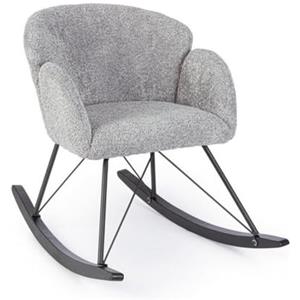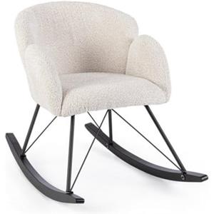 KONTE.DESIGN Poltrona a dondolo SIBILLA in tessuto bouclé naturale con base in legno rubberwood - Misure 86x62x72 cm