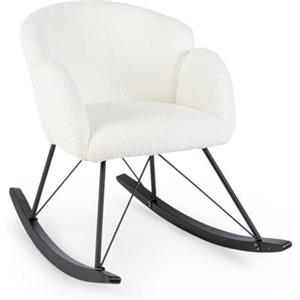 KONTE.DESIGN Poltrona SIBILLA a dondolo in tessuto bouclé bianco con base in legno rubberwood - Misure 86x62x72 cm, altezza seduta 44 cm