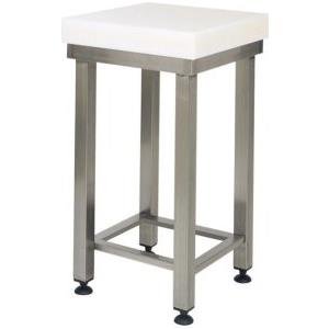 FORCAR Ceppo Professionale in Polietilene 8cm con Sgabello Inox - Dimensioni 50x50x88h cm
