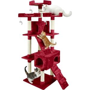AQPET Tiragraffi Manhattan 170 cm in Sisal Rosso con Cuccia e Piani di Appoggio per Gatti