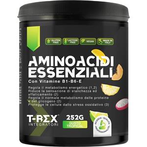T-Rex Integratori EAA Aminoacidi Essenziali Tropical - Polvere 252 g con Vitamine B1, B6 ed E