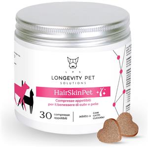 Longevity Pet HairSkinPet - Integratore per Pelo Lucido e Cute Sana per Cani e Gatti, 30 Compresse con Omega 3 e Vitamine