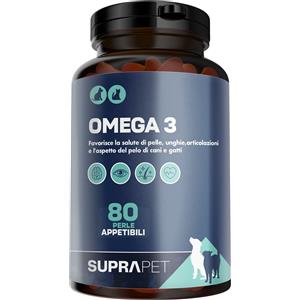 Suprapet Omega 3 - Integratore in Perle per Cani e Gatti con EPA, DHA e Vitamina E per Pelo e Articolazioni - 80 Perle