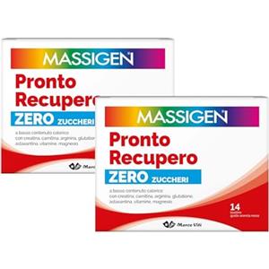 Massigen - Pronto Recupero Zero Zuccheri, Due Confezioni da 14 Bustine da 6 g, Integratore Tonico Energetico con Carnitina, Perfetto per il Recupero Muscolare, Creatina e Arginina