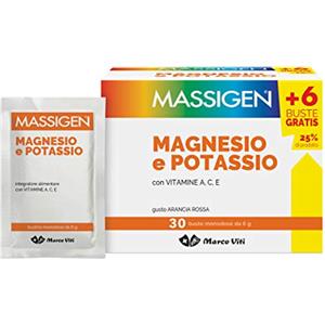 Massigen Magnesio e Potassio - Integratore Alimentare con Vitamine A, C, E - 24 6 Bustine Monodose Gusto Arancia Rossa in Integratori e Vitamine