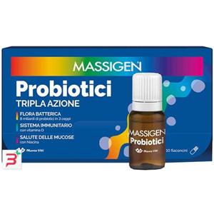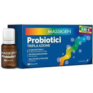 Massigen Probiotici Tripla Azione Supporto Intestinale e Immunitario in 10 Flaconcini - MASSIGEN - 943330340