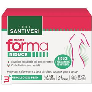 SANTIVERI VIGOR FORMA RIDUCE - Integratore Alimentare con Coleus, Opuntia, Guar e Cacao per il Controllo del Peso - 40 Compresse