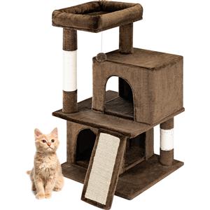 BAKAJI Albero Tiragraffi per Gatti con 3 Cucce Rifugio, 1 Pallina e Graffiatoio - Centro Attività Multilivello Altezza 91.5cm (Marrone)